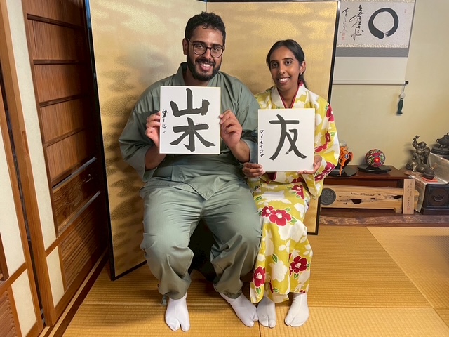Thank you for coming to SASAGIRIAN. Guests from London experience a Calligraphy.